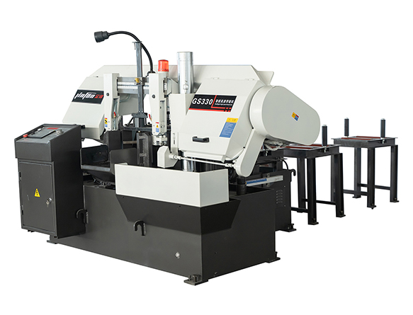 其次,臥式帶鋸床是水平送料,數控臥式帶鋸床通常搭配料架使用。操作人員只需將工件放置到料架上,即可實現自動進給。極大降低了工人的勞動強度。