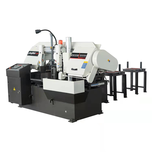 目前金鋒鋸業生產的臥式角度帶鋸床主要是采用旋轉體結構增大角度調節范圍、增加刻度表標識方便精確定位、雙立柱龍門結構運行穩固、數控全自動或半自動性能配置,臥式角度帶鋸床在運行時遵循編程指定,運用精確的數控技術快速開展高精度鋸切工程,實現簡易操控、智能檢測、自動夾緊、自動送料、自動進刀、智能調速、自動清潔等主要功能。