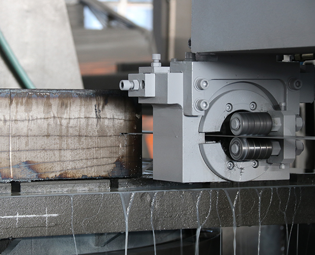 根據客戶的要求,金鋒鋸業為其量身打造了工作臺可360°回轉定位的多功能大型數控帶鋸床,主要解決客戶對有色金屬、中、低碳鋼的高效鋸切。這一臺大型數控帶鋸床GZK10150S采用了雙立柱龍門式結構,鋸切穩定、鋸口窄、鋸切精度高、自動化程度高、節能省力、生產效率非常快。