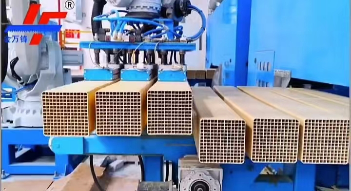 針對此類材料切割,金鋒鋸業(yè)建立了催化劑定制帶鋸床生產(chǎn)線,不同公司生產(chǎn)的脫硝催化劑外形尺寸不同,在生產(chǎn)過程中常常需要鋸切輔助,催化劑切割定制鋸床現(xiàn)生產(chǎn)線完整,技術(shù)成熟,對方形催化劑、蜂窩式脫硝催化劑、陶瓷管脫硝催化劑、不規(guī)則形狀脫硝催化劑等類似產(chǎn)品的鋸切效果非常優(yōu)越。催化劑定制帶鋸床支持半自動或智能全自動切割雙模式操作,客戶采購成本不同,可以根據(jù)客戶的需求量身打造。催化劑定制帶鋸床提供了對單一、成捆催化劑的精準(zhǔn)取料、送料、定位的工序,也可以配合客戶自有的生產(chǎn)線或替代傳統(tǒng)流水線,大大壓縮生產(chǎn)成本,催化劑定制帶鋸床還可以集中廢料處理,安全環(huán)保,全程自動,節(jié)省人力成本。