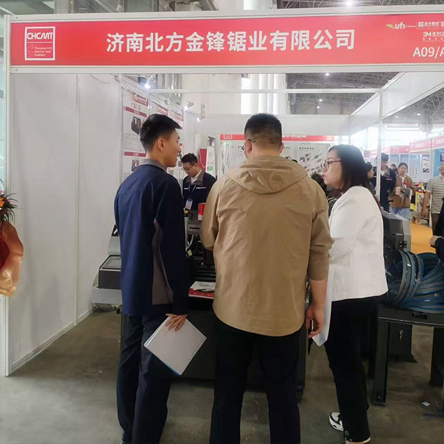 滄州是帶鋸床制造的重要產(chǎn)地,聚集了眾多帶鋸床的生產(chǎn)廠家,產(chǎn)業(yè)鏈成熟,在金屬加工領(lǐng)域占據(jù)重要市場地位。金鋒鋸業(yè)十分重視本次展會,特地展出了本公司的“明星產(chǎn)品”—G-330旋轉(zhuǎn)角度帶鋸床、GS260數(shù)控帶鋸床、GZ4230大小輪帶鋸床。G-330采用剪切式結(jié)構(gòu),鋸架可正向旋轉(zhuǎn)0°~45°或反向旋轉(zhuǎn)0°~60°,可鋸切有角度要求的各種角鋼、圓鋼、矩形管等。GS260數(shù)控帶鋸床搭配彩色觸摸屏,操作簡單,采用PLC控制系統(tǒng),可設(shè)置一組或幾組連續(xù)切割,效率高效。GZ4230大小輪帶鋸床是金鋒鋸業(yè)爆款產(chǎn)品,大小輪結(jié)構(gòu),大傾斜角度適合管材型材切割,效率高、精度高,深受廣大客戶喜愛。