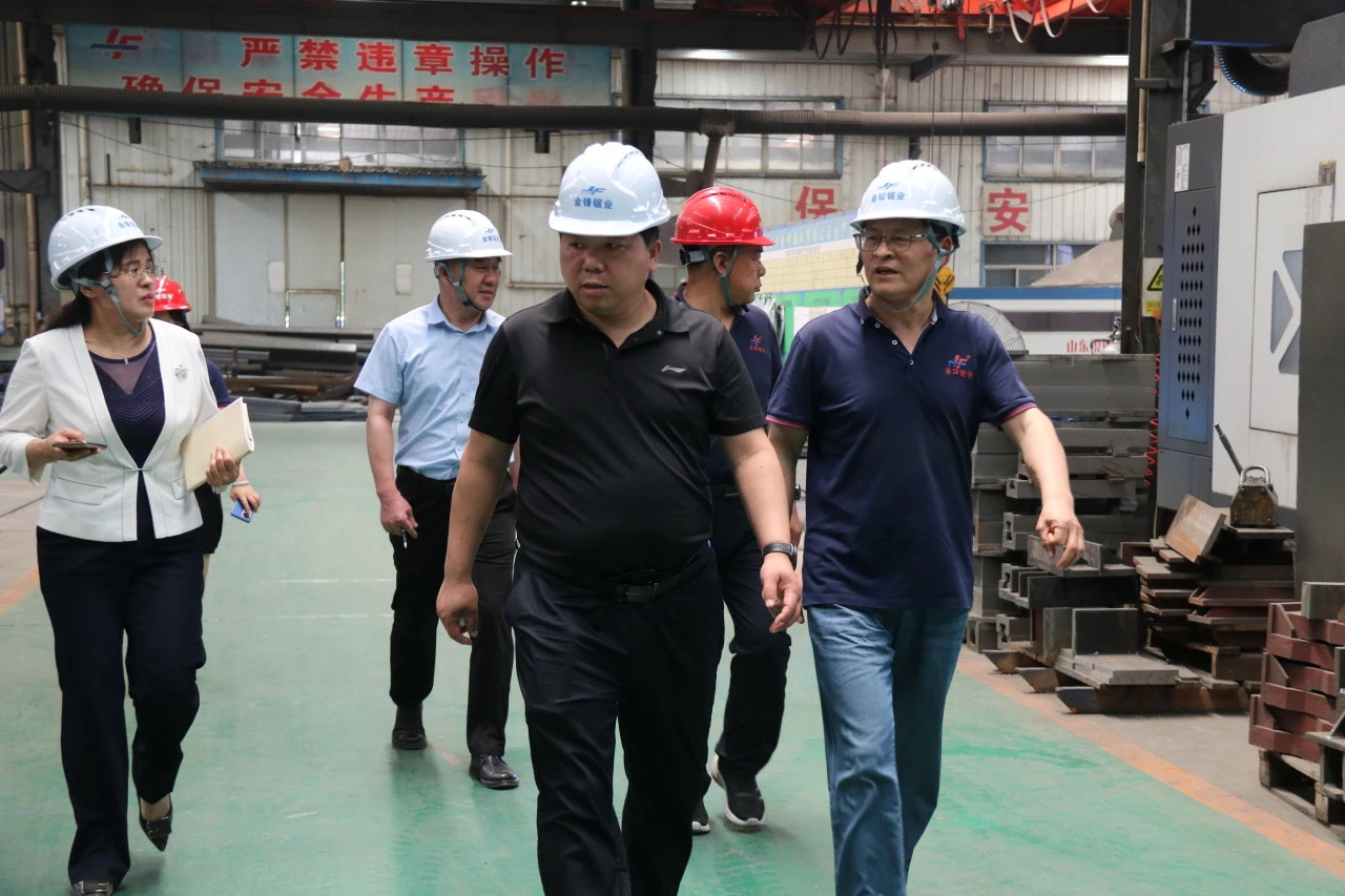 2025年6月6日,濟北開發區黨工委副書記、管委會主任王云剛一行蒞臨金鋒鋸業,開展安全生產檢查指導工作,并了解企業生產經營狀況。開發區應急保障局局長陳寶霞、經濟發展局主管孟長勇等領導隨同察看。金鋒鋸業總經理劉慶春為開發區領導作了詳細的介紹和匯報。