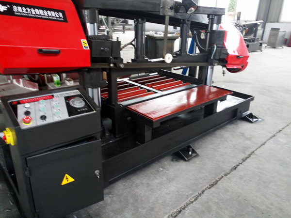 4)虎鉗液壓夾緊,鋸切下的工件不會松動,避免壓損鋸帶,保護(hù)鋸帶;