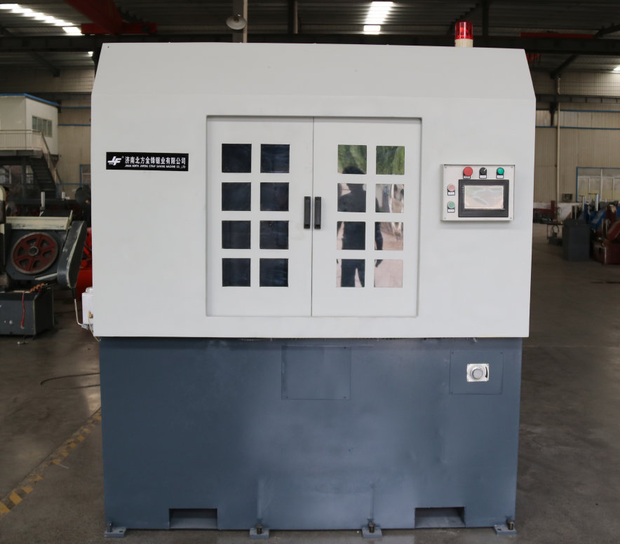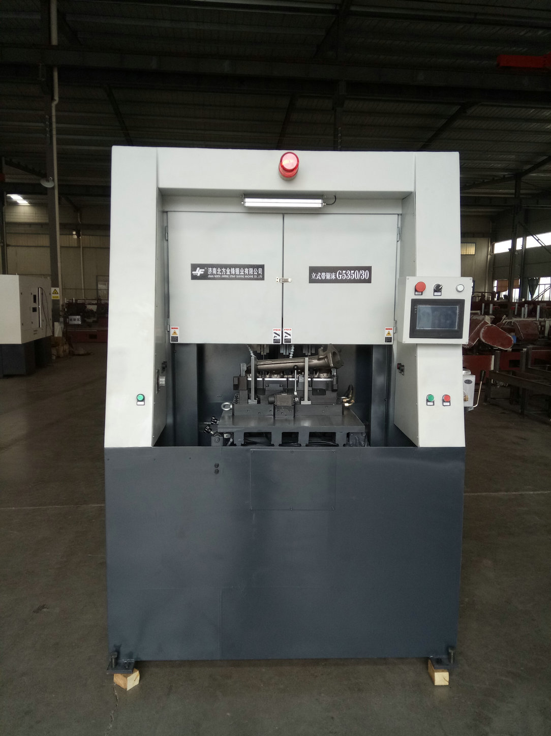 G5320帶鋸床是專為切割汽車排氣歧管定制,采用立式橫切結構,三個鋸架,三根鋸條同時鋸切。將工件固定在工作臺的專用工裝上,由油缸帶動工作臺水平方向移動實現鋸切。該設備替代圓鋸片切割,效率提高30%,耗材降低50%左右,得到廠家高度認可。國內首創,已獲專利,證書編號: 第7827701號