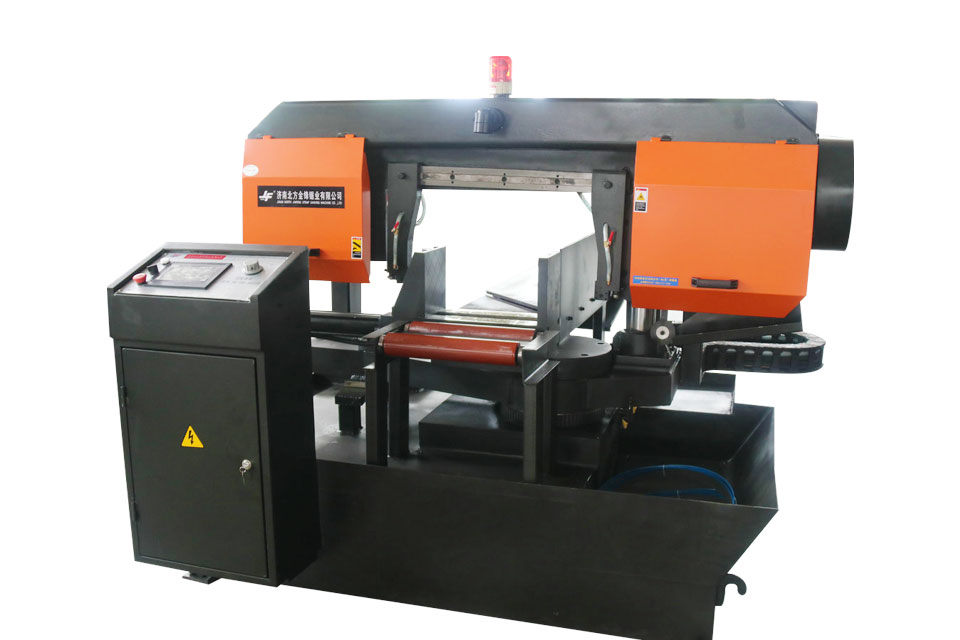 10.獨立的操作箱,采用高效節能設計簡潔之電路板,轉角、夾緊、鋸切過程自動化;具有內循環冷卻、斷帶保護、過載保護等,機床主要潤滑部位配備集中潤滑裝置,保養維護方便。
